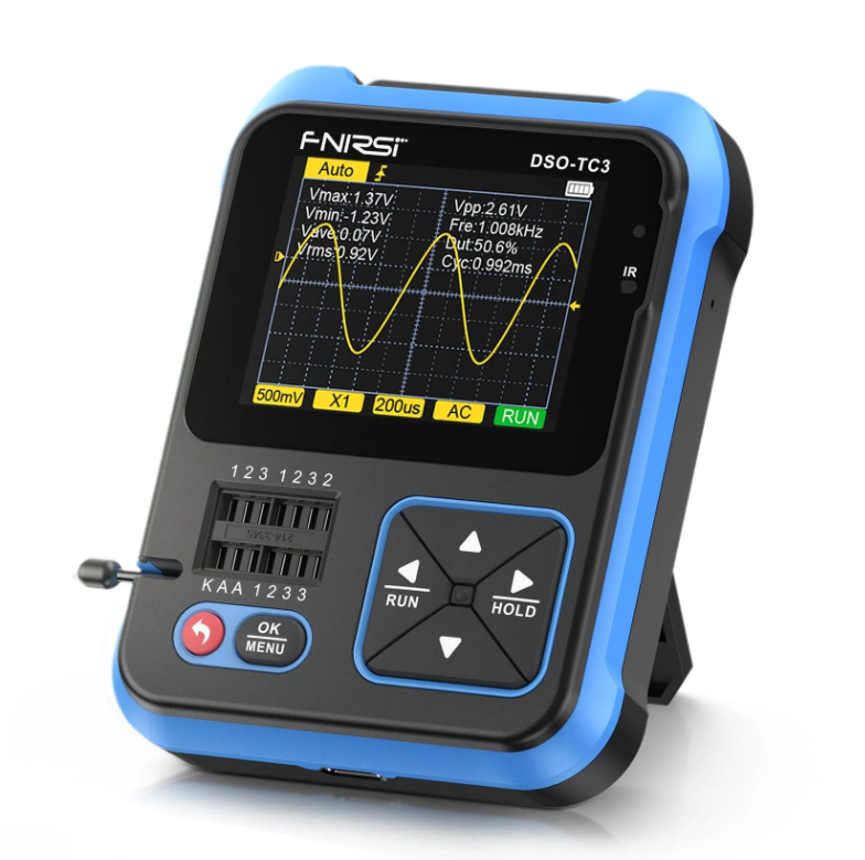 این قابلیت برای تعمیرکاران یک نعمت بزرگ است. تصور کنید در حال عیبیابی یک برد هستید و با یک ترانزیستور SMD ناشناس روبرو میشوید. با DSO-TC3 میتوانید به سرعت آن را شناسایی کنید. همچنین، اندازهگیری ESR خازنها، فرآیند تعمیر منابع تغذیه را به شدت تسریع میبخشد. این ویژگی به تنهایی قیمت FNIRSI DSO-TC3 را توجیه میکند.