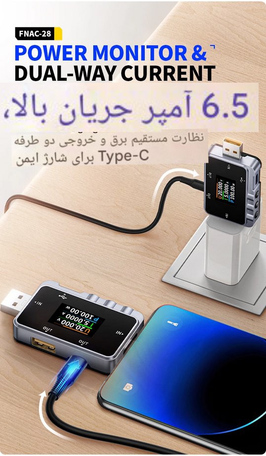 قابلیتهای اندازهگیری و تحلیل دقیق دستگاه اندازه گیری سرعت شارژ FNAC-28 USB افنیرسی